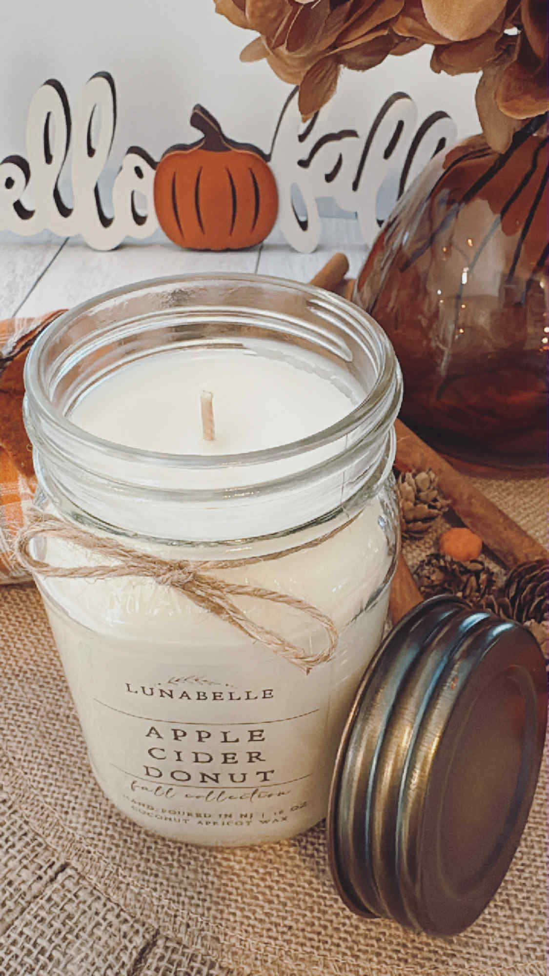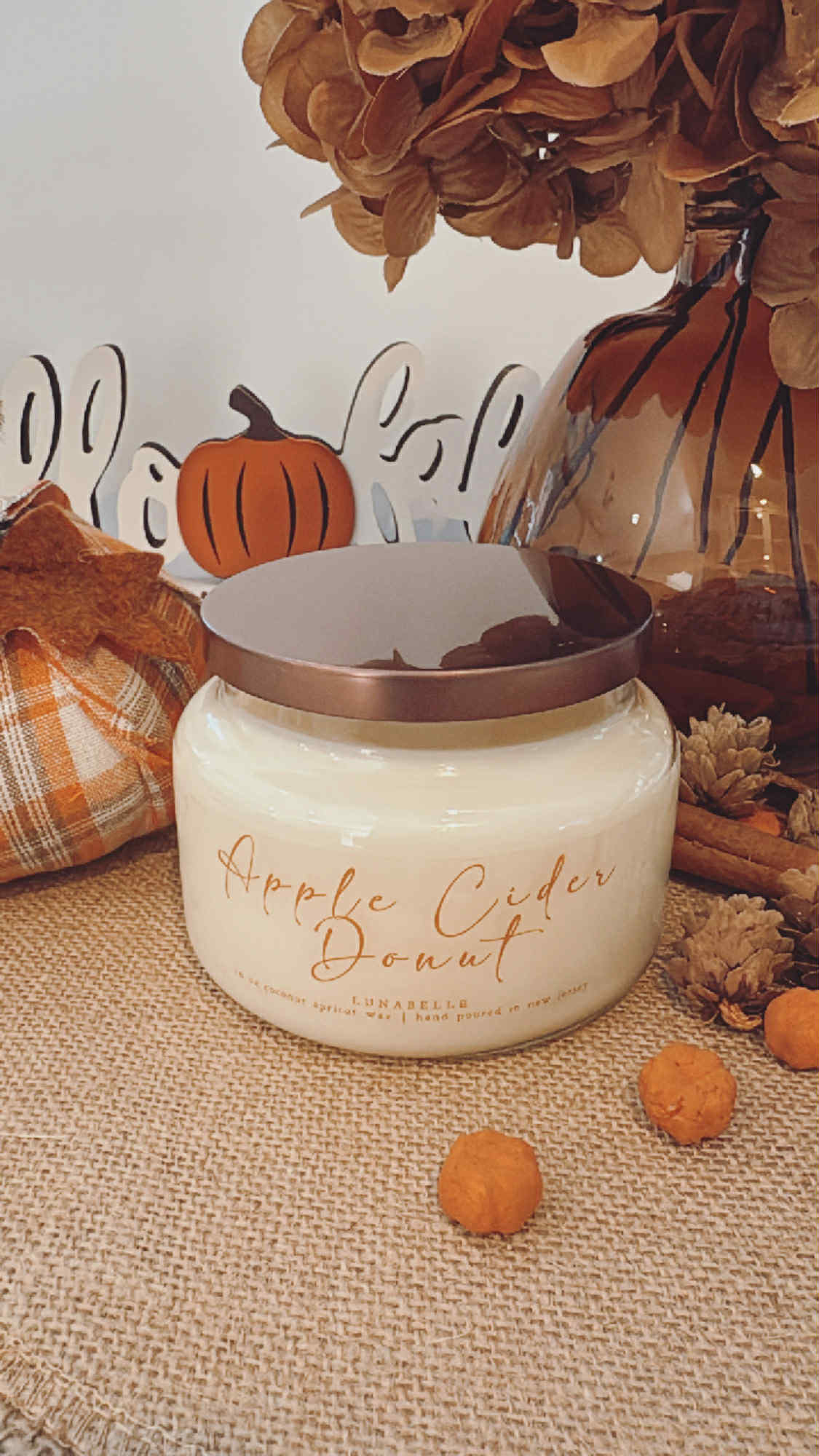🍎A delicious blend of autumn favorites. This cozy Apple Cider Donut scent starts with the crisp warmth of apple cider and fresh-fried donuts, wrapped in a comforting blend of cinnamon spice. A sweet base of vanilla, tonka bean, and soft musk lingers like the scent of homemade treats on a cool autumn day.