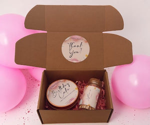 This Happy Birthday reusable candle tin made with vegan coconut apricot wax; crackling wood wick and biodegradable glitter comes with a cute apothecary glass jar that includes 40 rose tipped matches all wrapped with a bow ready to gift!