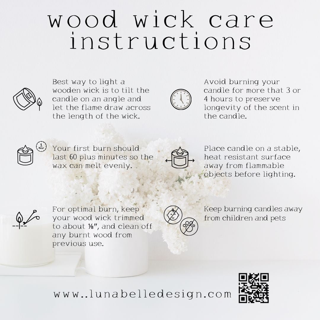 BURN TIME: Approx. 15 hours βοΈTrimming the wick before each use is essential for a clean, even burn. You can simply use your fingers to pinch off the charred bits β easy!